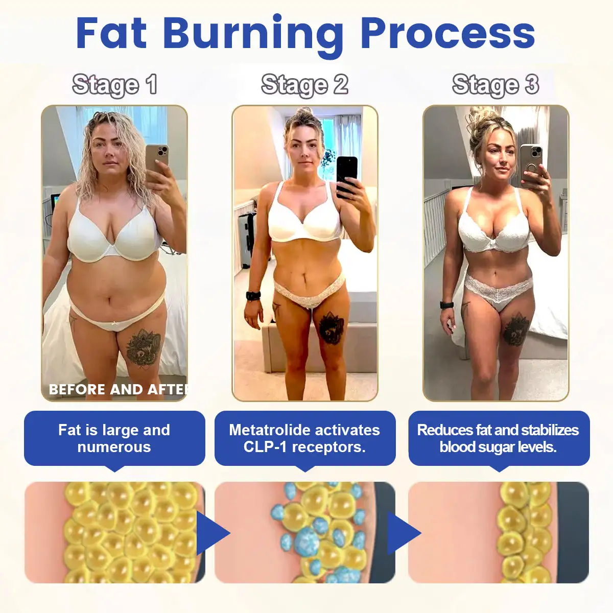 Metatrolide. combined with apple cider vinegar and the powerful Moringa extract. helps the body utilize fat stores more effectively for energy. By improving insulin sensitivity. it accelerates fat burning. especially during calorie restriction or increased physical activity. The apple cider vinegar works to stabilize blood sugar levels. preventing excess glucose from being stored as fat.