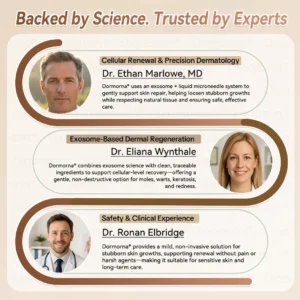 Dormornaยฎ uses aย cell-level exosome micro-needle systemย that loosens lesions from the root, dries them out, and lets them fall offย without pain, bleeding, or damage.