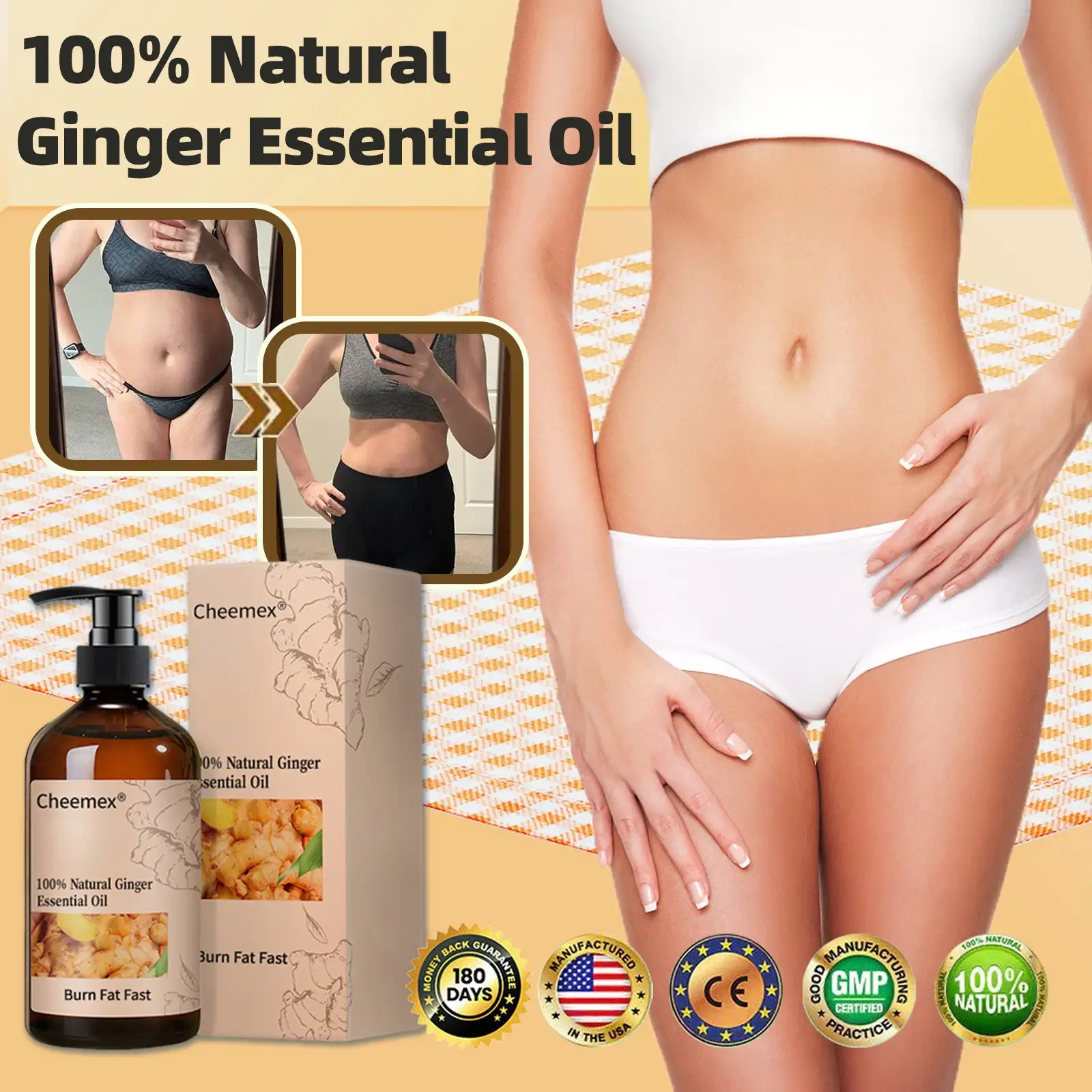 Clinically studied by metabolic health experts, Cheemexยฎ Ginger Slimming Oil activates circulation and thermogenic fat burning, helping to visibly reduce bloating, belly fat, and cellulite within just 7 days.