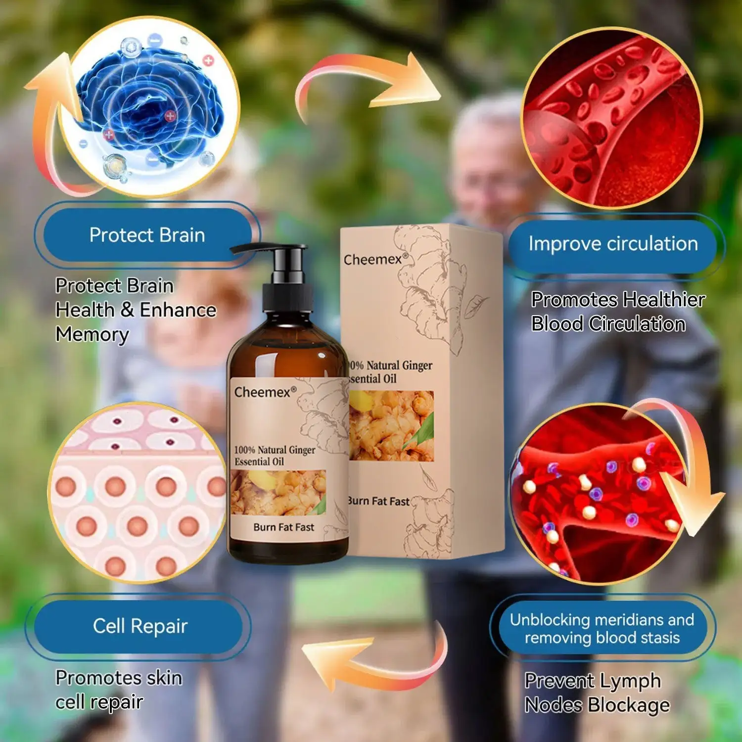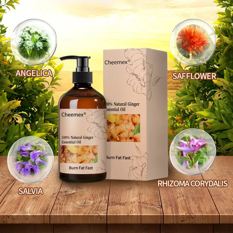 Cheemexยฎ Ginger Slimming Oilย combines the natural thermogenic power of ginger with a powerful blend of traditional botanicals:ย Angelica, Safflower, Salvia, andย Rhizoma Corydalisโcarefully formulated to enhance circulation, promote cellular repair, and support graceful aging from within.