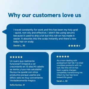 “This is my second month using it, and I can already see the difference. I used to have a pretty wide part and could see my scalp in photos. Now, it’s definitely filling in. The best part? The roll-on is clean, quick, and doesn’t leave any mess. Way better than sprays or oily serums. My wife even noticed new hairs near my crown last week.”