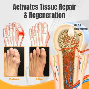 In our specialized formula, we harness the potent power of PLA2 Enzymes (bee venom component), to offer a powerful function in bunion care. PLA2 enzymes stimulate the release of growth factors, pivotal molecules that orchestrate tissue repair and regeneration processes in injured tissues. These growth factors play pivotal roles in fostering the formation of new connective tissue and aids in the regulation of inflammation within the bunion-affected area.