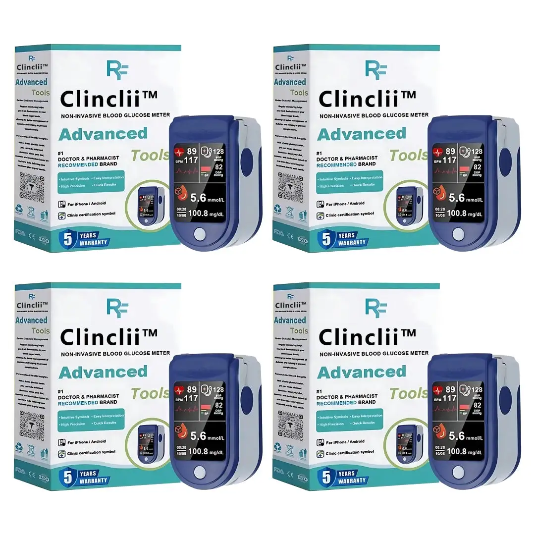 Clinclii’s latest innovative product – the Smart Multifunctional Non-Invasive Laser Blood Sugar Monitor – integrates cutting-edge technology to provide exceptional health monitoring. The device uses an extremely energy-efficient intelligent MCU control chip and advanced “LAMBERT BEER” algorithm. ensuring highly accurate measurement results. It combines photon chip technology. silicon wafer. and light absorption spectroscopy to offer reliable non-invasive monitoring of blood sugar. blood pressure. and blood oxygen levels. Certified by ADA & . the device features six display modes for easy and comprehensive health monitoring. Whether you are managing diabetes. monitoring cardiovascular health. or tracking blood oxygen levels. Clinclii™ provides a trusted. integrated health solution to meet your health needs.