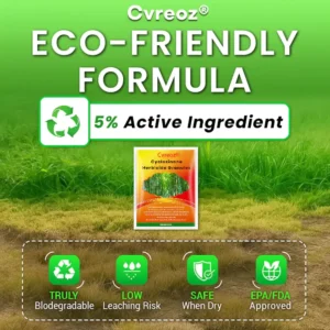Cvreoz® Cyclosinone Herbicide Granules is manufactured using 100% organic, non-toxic ingredients in accordance with sustainable agricultural standards. The product has been formulated to ensure that it poses no harm to the environment, wildlife, or domestic pets. It is an eco-friendly solution that supports safe gardening practices while maintaining the well-being of surrounding ecosystems.