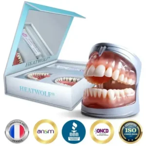 🌟 Qualité et Sécurité Fiables : Avec HEATWOLF®, vous pouvez avoir confiance en notre engagement envers la qualité et la sécurité. L’Ensemble Complet de Dentiers en Silicone HEATWOLF® est fabriqué à partir de silicone de qualité supérieure, non toxique, rigoureusement testé pour garantir qu’il est aussi doux pour vos gencives que résistant. Ce matériau sûr offre un ajustement confortable et durable, vous permettant de profiter de vos dentiers en toute sérénité. Notre silicone est conçu pour résister à l’usure quotidienne tout en conservant son confort et son intégrité, vous offrant une tranquillité d’esprit à chaque sourire. Soyez assuré qu’avec notre kit, vous investissez dans un produit qui donne la priorité à votre santé et à votre bien-être.