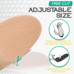 • Free Cut (Adjustable Size): Trim to fit if necessary. Cut along the outline that matches your original insole or use the size of your shoes. Remove existing insoles and replace with our Free Cut Flat Foot Arch Support Insoles