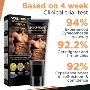 Sculptique™ Gynecomastia Cream is an innovative solution that effectively reduces the size of male breasts and promotes firmer, smoother skin. Unlike invasive surgical procedures, Sculptique™ Gynecomastia Cream is a non-invasive and user-friendly solution. This makes it the perfect option for men seeking to enhance their chest’s appearance without undergoing surgery or relying on strict diets and exercise regimens.