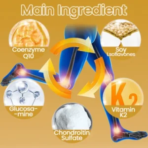 Coenzyme Q10: Coenzyme Q10 is an antioxidant substance that promotes energy production in cells. It supports tissue repair and regeneration and helps maintain the health of damaged joints and bones.