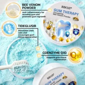 The primary active ingredient, bee venom peptide melittin, works as a powerful anti-inflammatory agent that penetrates deep below the gum line where other treatments can’t reach. When combined with our proprietary blend of regenerative compounds, it creates a synergistic effect that activates your body’s natural healing mechanisms.