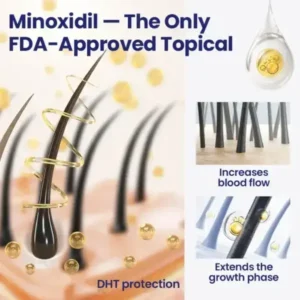 “I was skeptical about another hair growth product, but the 5% Minoxidil concentration convinced me to try. Best decision ever! My temples are filling in, and I’ve regained the hairline I lost 10 years ago. Absolutely life-changing.”