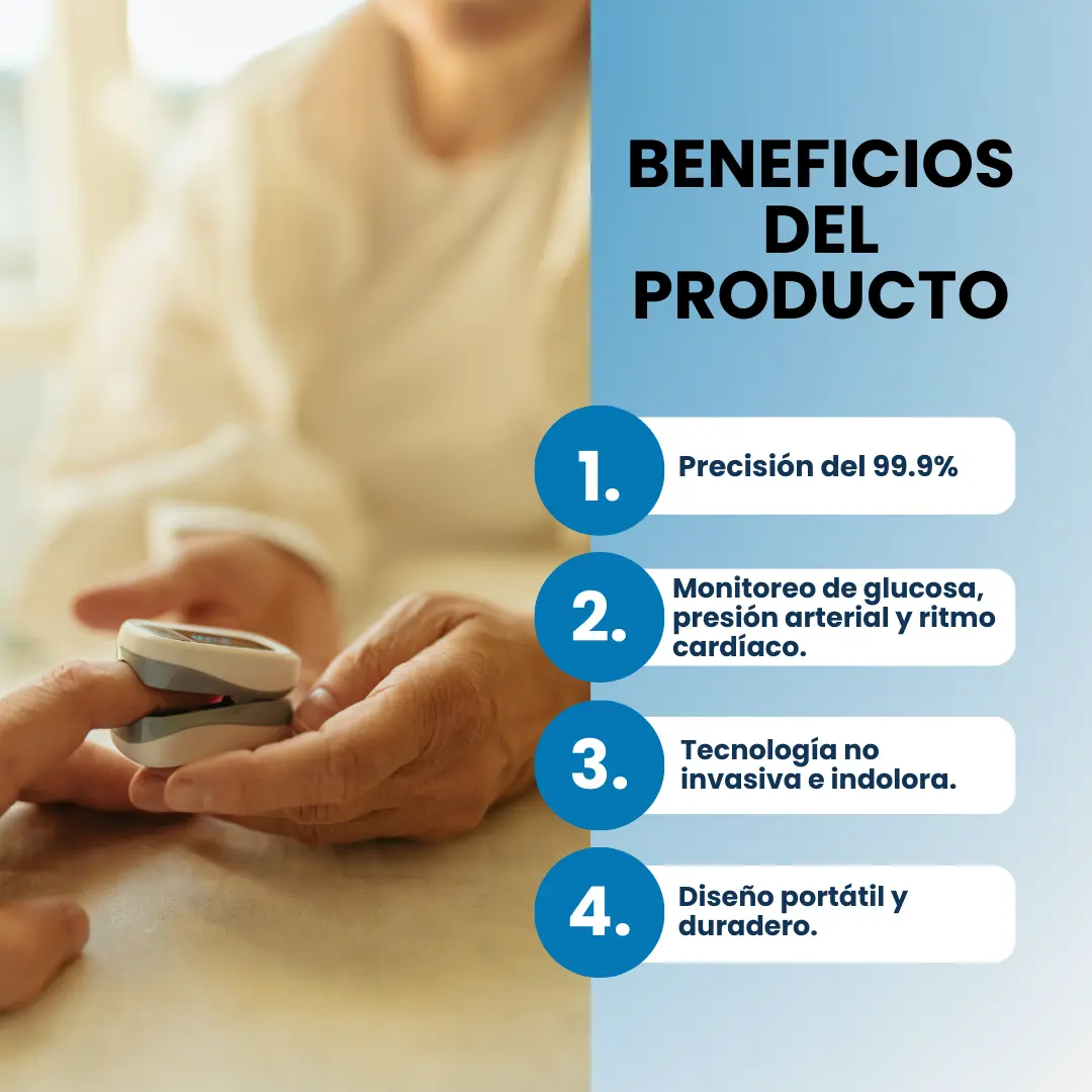 Con Fivfivgo™, obtendrás resultados confiables al instante gracias a su innovadora tecnología de espectroscopia avanzada. Ideal para personas mayores que buscan facilidad y rapidez. Olvídate de procedimientos dolorosos y complejos.