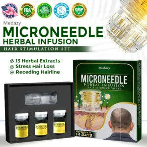Customer studies confirm that the Medazy® Microneedle Herbal Infusion Hair Stimulation system delivers powerful results for a wide range of hair loss issues, including genetic thinning, hormonal imbalances, stress-related shedding, and age-related loss.