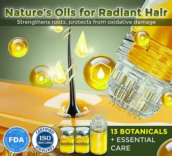 Microneedling works by creating tiny micro-channels on the scalp using ultra-fine 0.7 mm needles. These micro-injuries do three important things: