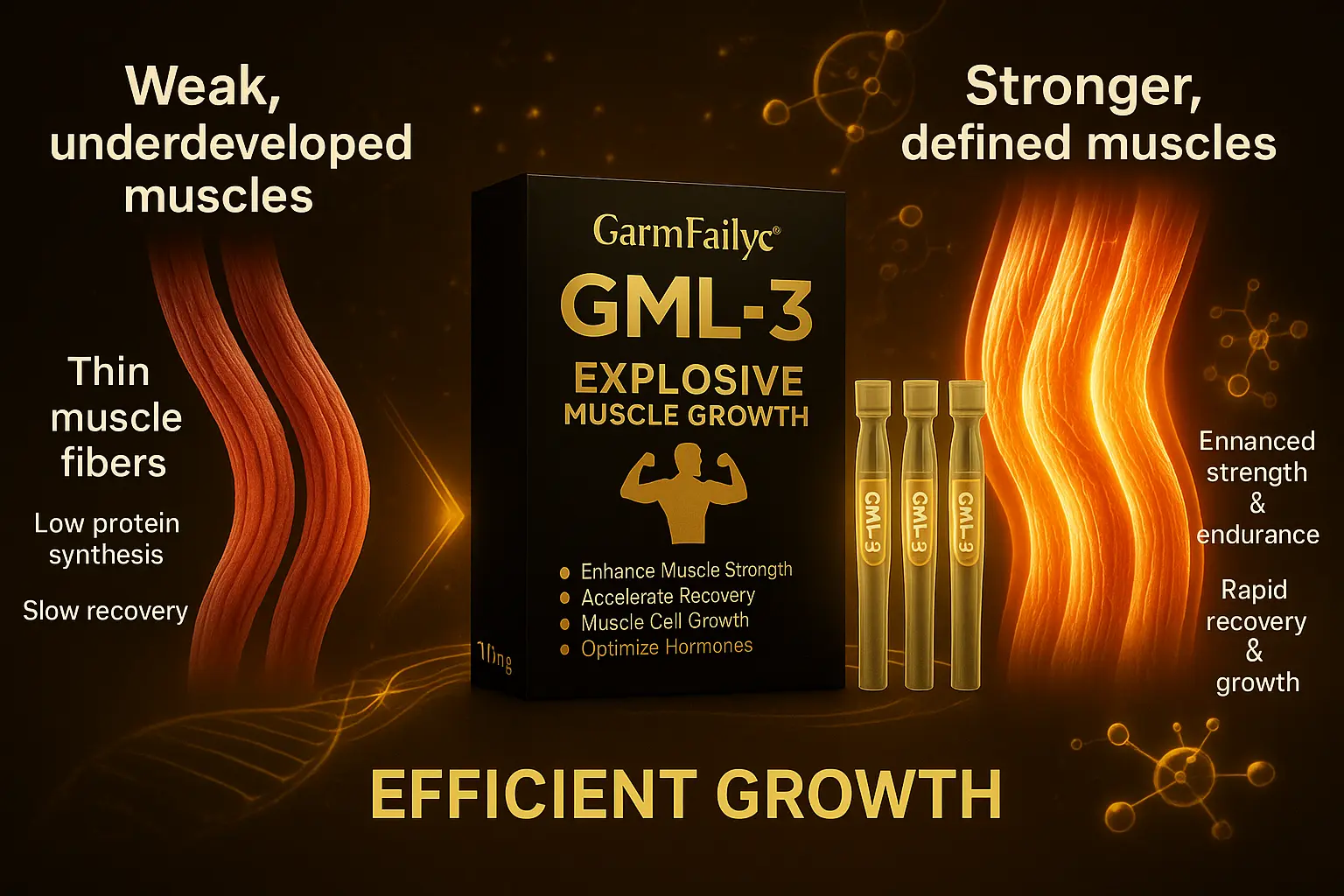 Clinically tested by leading endocrinologists, GarmFailycยฎ GML-3 Six-in-One Metabolism Oral Solution has been shown to accelerate muscle growth, enhance metabolic function, and improve strength and recovery โ with visible results in just 7 days.