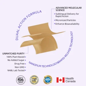 The Oral Strips uses nanofilm technology and a rapid release process to allow it to dissolve quickly and deliver GABA and through oral administration. These ingredients work in the body with a dual mechanism. After the oral patch dissolves, these ingredients will naturally dissolve and be absorbed by the body, and release GABA and in a stable and controlled manner over time without the peaks or drops that are common with s.