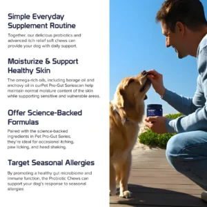 A: Yes. Scientific research shows that canine skin issues often stem from a gut imbalance (the Gut-Skin Axis). By regulating gut immunity, many owners see a significant improvement in seasonal allergies and itching after 6-8 weeks of consistent use.