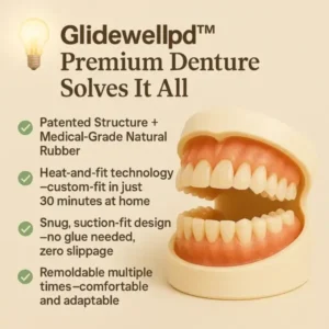Glidewellpd™ is a comfortable, natural-looking denture that fits perfectly at home without glue and helps you smile confidently again.