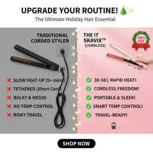 Give the gift of modern beauty tech this season. 🎁 The It SKAVIX™ combines 30-second rapid heating ⚡ with a travel-ready, cordless design that leaves traditional corded irons in the past. 🕊️
