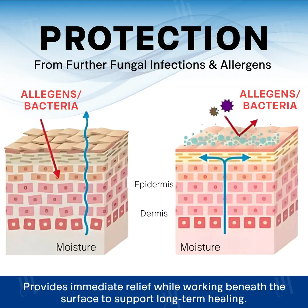 Prevents reinfection from sweat, clothes, and towels