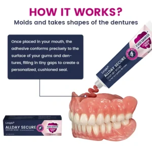 Say goodbye to loose dentures, sticky pastes, and daily reapplications. With Lmipki® AllDay Secure Denture Bond, you can enjoy days of effortless hold, all-day comfort, and complete peace of mind. Order now and experience the adhesive that truly holds up.