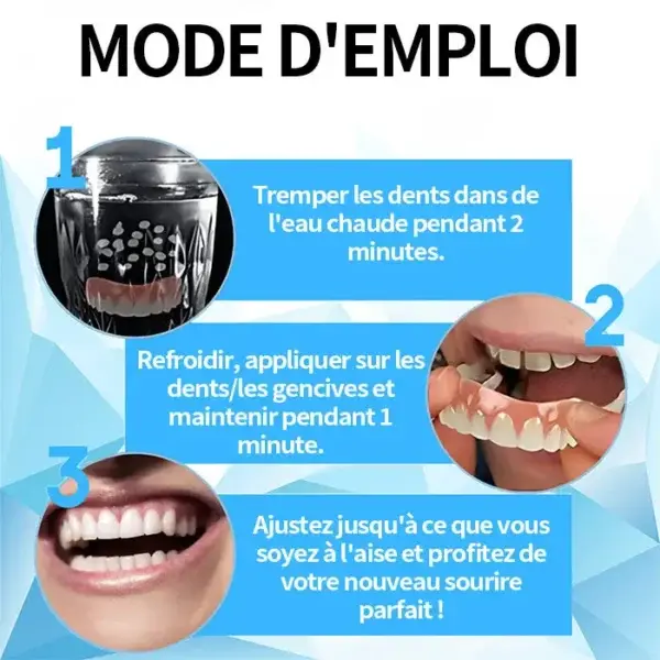 🌟 Ajustement facile, confort sans couture : profitez de prothèses dentaires qui s’adaptent parfaitement à votre bouche dès le moment où vous les mettez. Notre conception de pointe assure un ajustement serré et sécurisé, offrant un confort exceptionnel qui ressemble à une partie naturelle de votre bouche. Vous pouvez vaquer à vos occupations en toute confiance, sans gêne ni déplacement, vous permettant de manger, de parler et de sourire sans tracas ni souci.