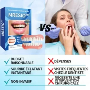 🌟 Excellence économique : obtenez un sourire parfait sans grever votre budget. Mresio™ offre une solution très abordable qui offre une qualité et des résultats exceptionnels. Nos produits de prothèses dentaires innovants vous garantissent le sourire que vous avez toujours souhaité tout en gardant les coûts gérables. En offrant une alternative économique aux procédures dentaires coûteuses, Mresio™ vous permet de bénéficier de résultats de qualité professionnelle sans compromettre la qualité. Adoptez un beau sourire confiant à une fraction du prix et découvrez la valeur de l’abordabilité combinée à l’excellence.