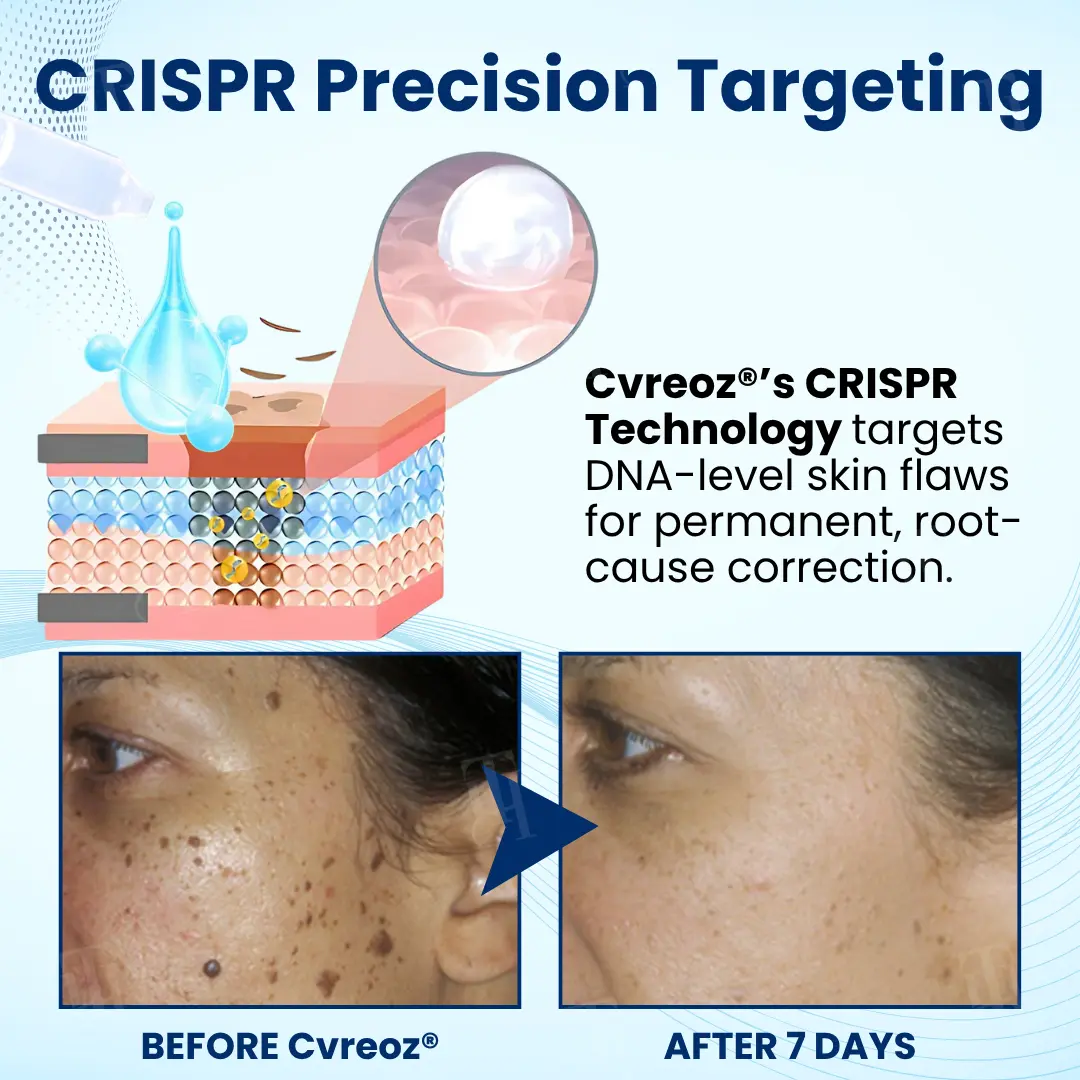 The Cvreoz® Skin Radiant Care Drops represent a groundbreaking advancement in skincare science, utilizing CRISPR genetic engineering technology to eliminate skin imperfections at their root. CRISPR, the same cutting-edge technology revolutionizing medicine and genetics, targets the DNA-level triggers of skin imperfections like skin tags, dark spots, and moles, ensuring fast, permanent, and allergy-free results.