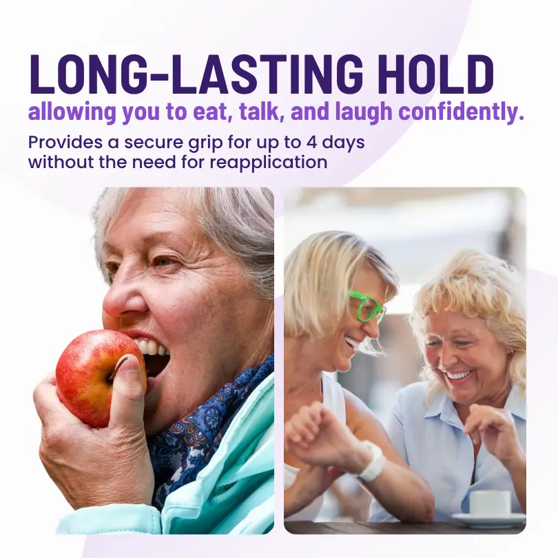 ✅ Long-Lasting Hold: Provides a secure grip for up to 4 days without the need for reapplication, allowing you to eat, talk, and laugh confidently.