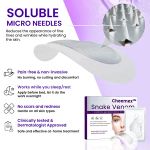 Cheemex™ Microneedle Eye Patch gently reduces wrinkles, puffiness, and dark circles using snake venom peptide for visibly younger-looking eyes.