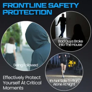 The built-in tactical flashlight unleashes a blinding 150-lumen beam, powerful enough to illuminate dark streets, alleys, parking lots, campsites, or even your car surroundings before you step in. It’s the perfect everyday device for nighttime safety, giving you the power to see clearly and react fast – before danger even gets close.
