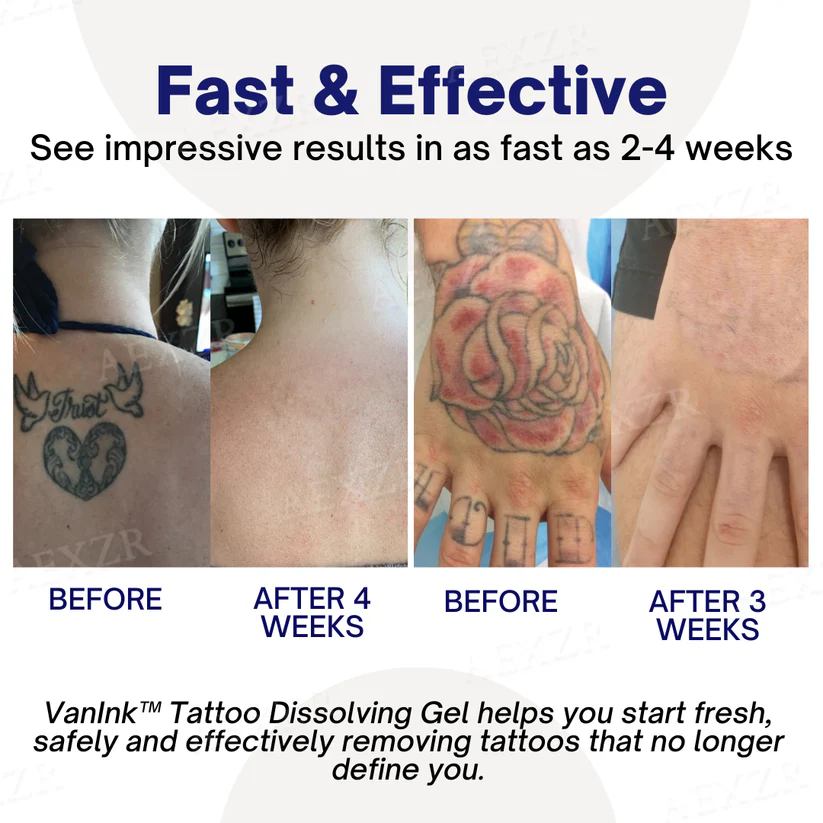 - Safe & Effective: VanInk™ uses gentle, natural ingredients that have been clinically proven to be safe for tattoo removal.