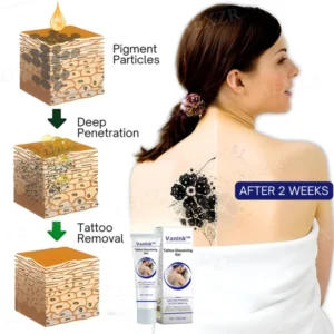 VanInk™ provides an affordable, clinically proven, and non-invasive solution for tattoo removal. Unlike traditional tattoo removal methods, such as laser treatments or surgery, VanInk™ allows for the gradual breakdown and removal of tattoo pigments without discomfort or high costs. Its combination of skin-restoring ingredients and gentle formula ensures that your skin remains healthy and smooth throughout the process.