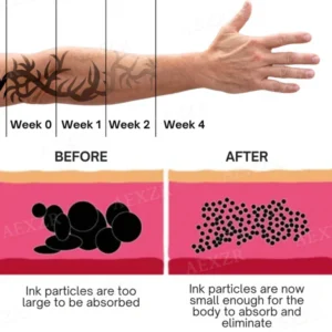 - No Residual Pigments: VanInk™ ensures that tattoos fade gradually without leaving traces of pigment behind.