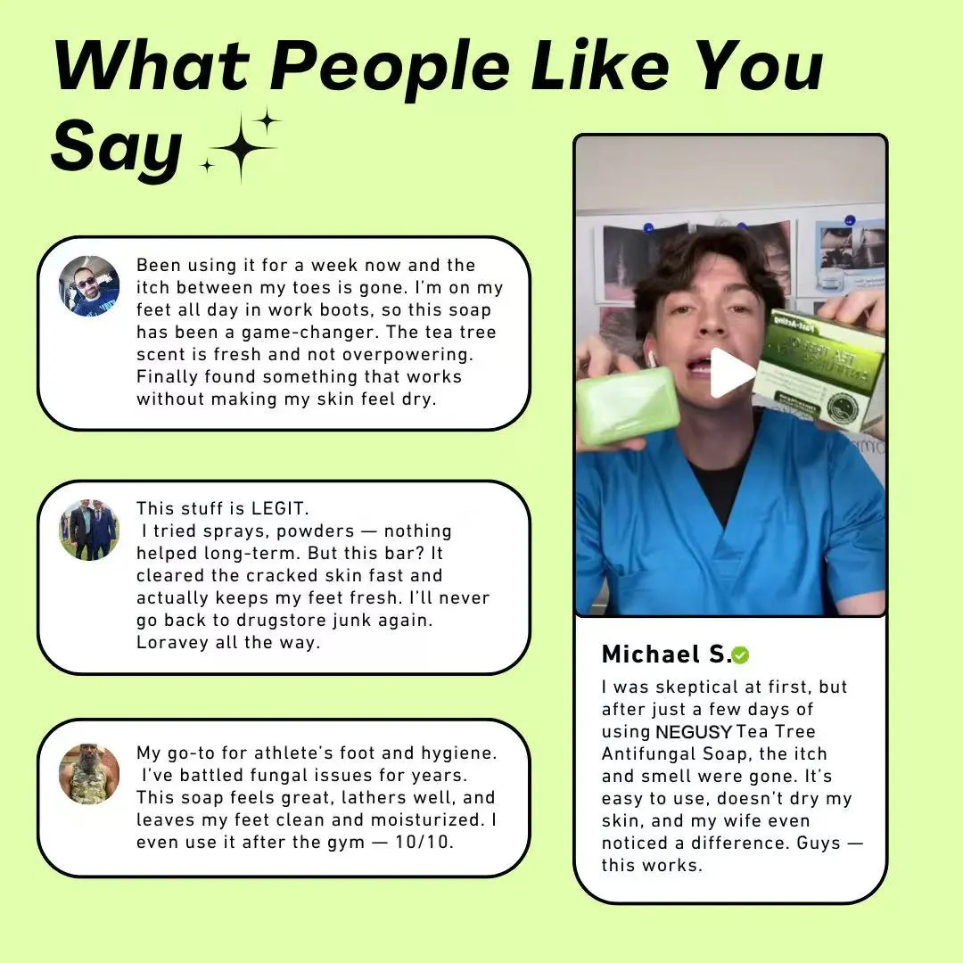 With NEGUSY™ Tea Tree Soap, you’re not just washing — you’re fighting fungus at the root. Regain comfort. Regain confidence. Regain your life.