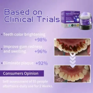 Experience noticeable whitening results in just one week with BBOJI™ Teeth Restoration Mineral Powder. Purple is the opposite and complementary color of yellow on the color wheel, so applying water-soluble purple dye to your teeth will counteract any yellow undertones. Plus, its vitamin C-rich formula removes plaque, tartar, and discoloration, restoring teeth to their natural whiteness.