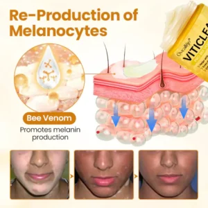 Bee Venom:With PLA2 and melittin, bee venom modulates immune response and stimulates melanocyte growth. It helps prevent further pigment loss and promotes repigmentation in vitiligo-affected skin.